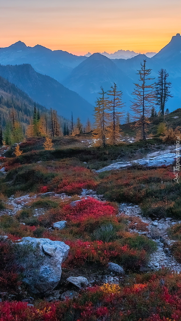 Edytor tapety: Kolorowe rośliny na tle gór Kaskadowych