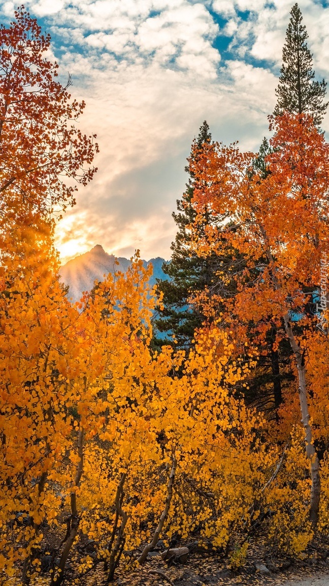 Edytor tapety: Pożółkłe brzozy w słońcu