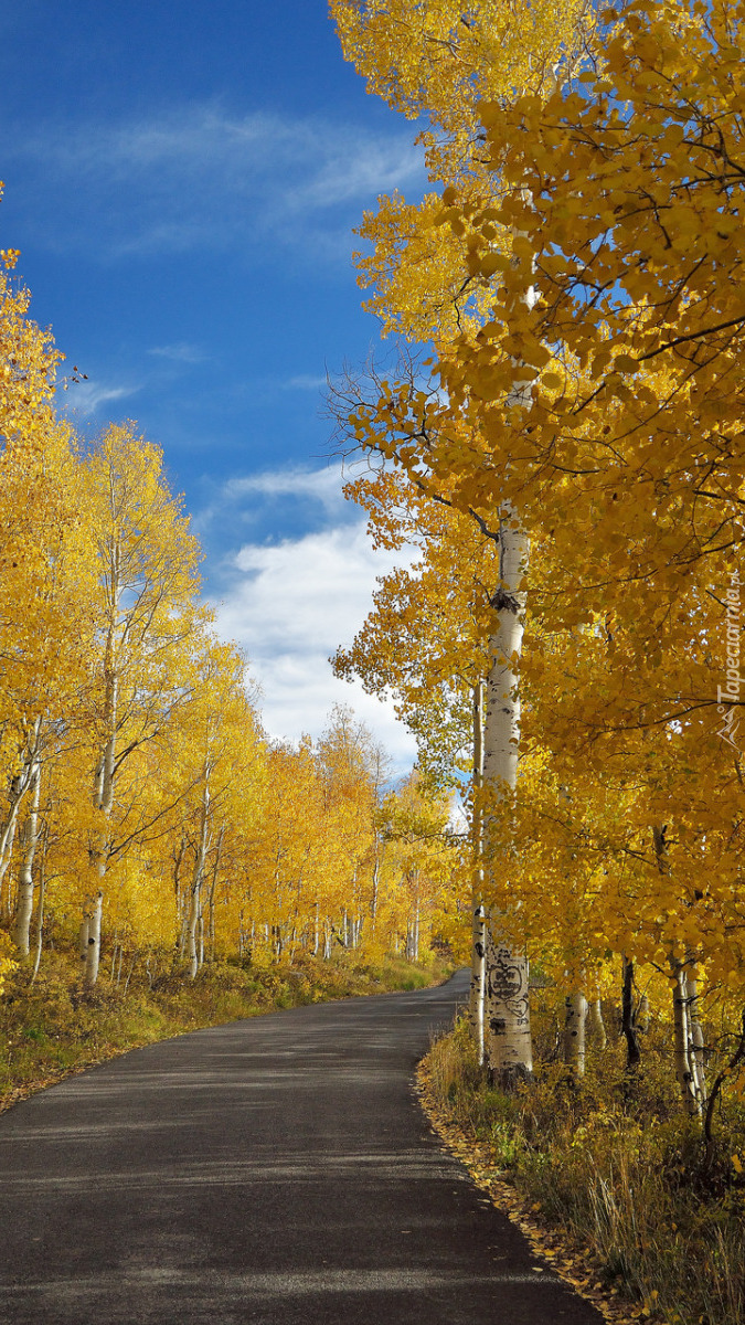 Edytor tapety: Jesienne brzozy wzdłuż drogi