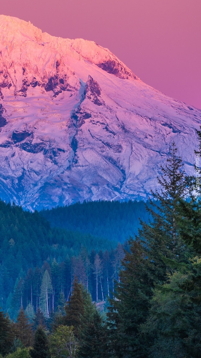 Edytor tapety: Świerki i ośnieżone szczyty gór