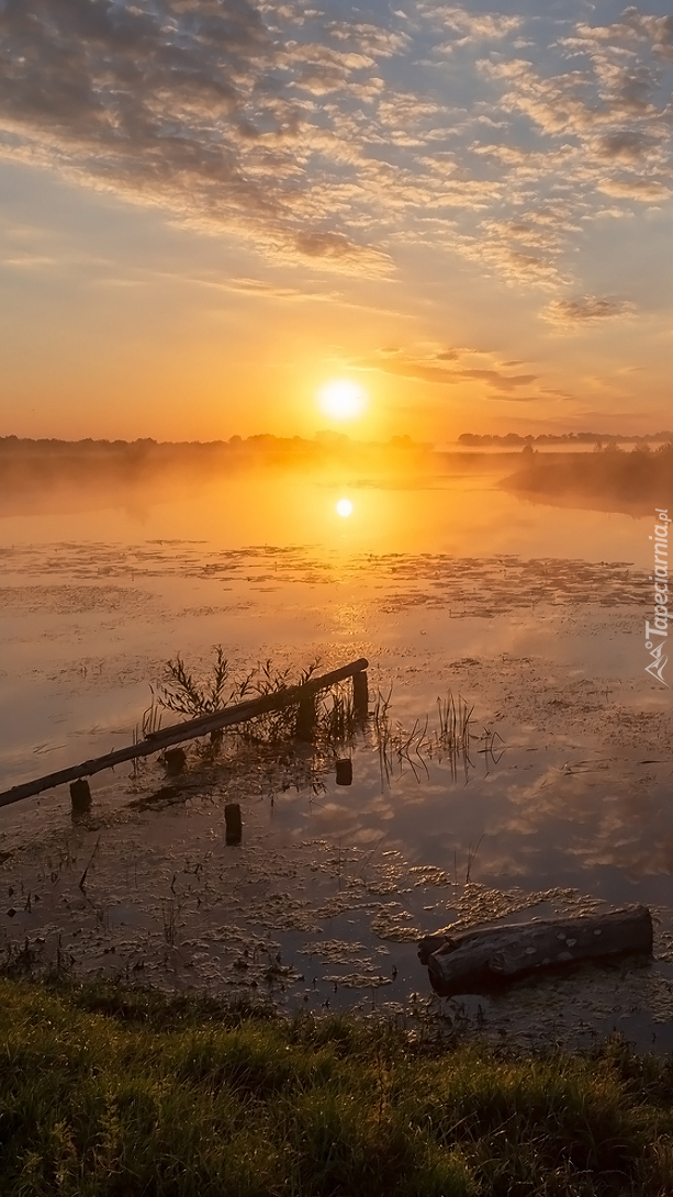 Edytor tapety: Zachód słońca nad jeziorem