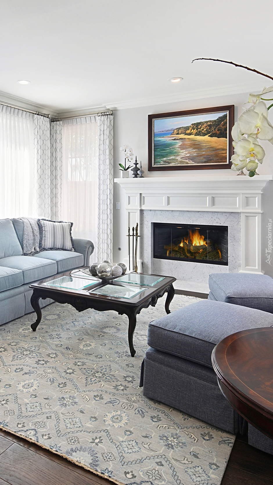 Edytor tapety: Salon z kominkiem
