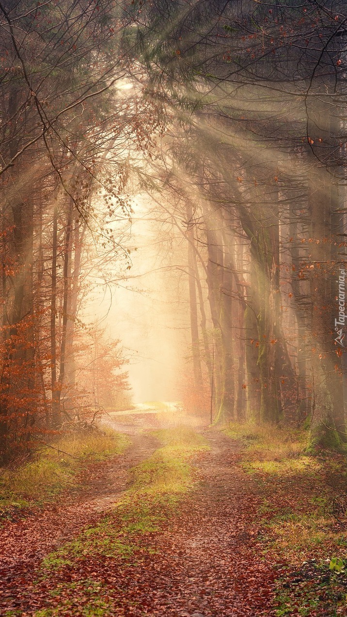Edytor tapety: Leśna droga w promieniach słońca