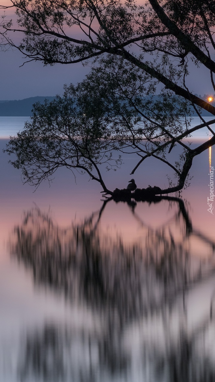 Edytor tapety: Drzewo nad jeziorem wieczorowa porą