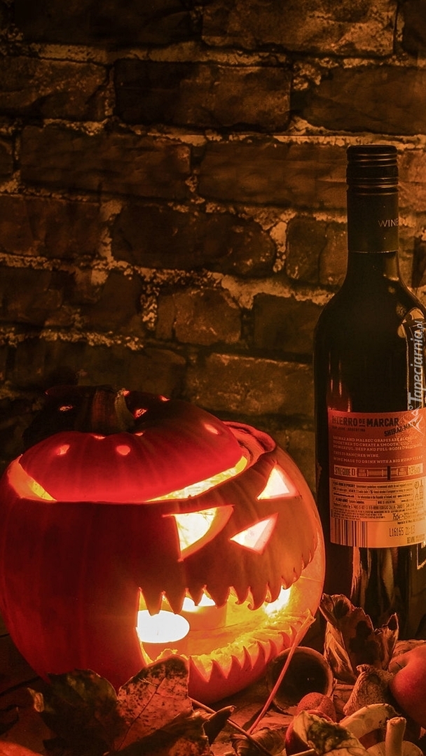 Edytor tapety: Lampion z dyni i butelka wina