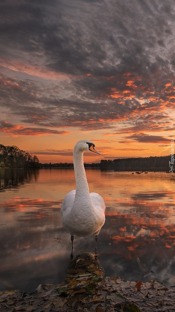 Edytor tapety: Łabędź na brzegu jeziora