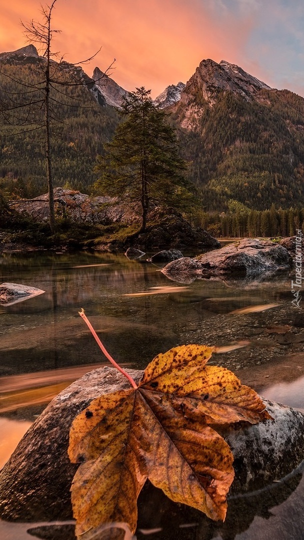 Edytor tapety: Liść na kamieniu w jeziorze Hintersee
