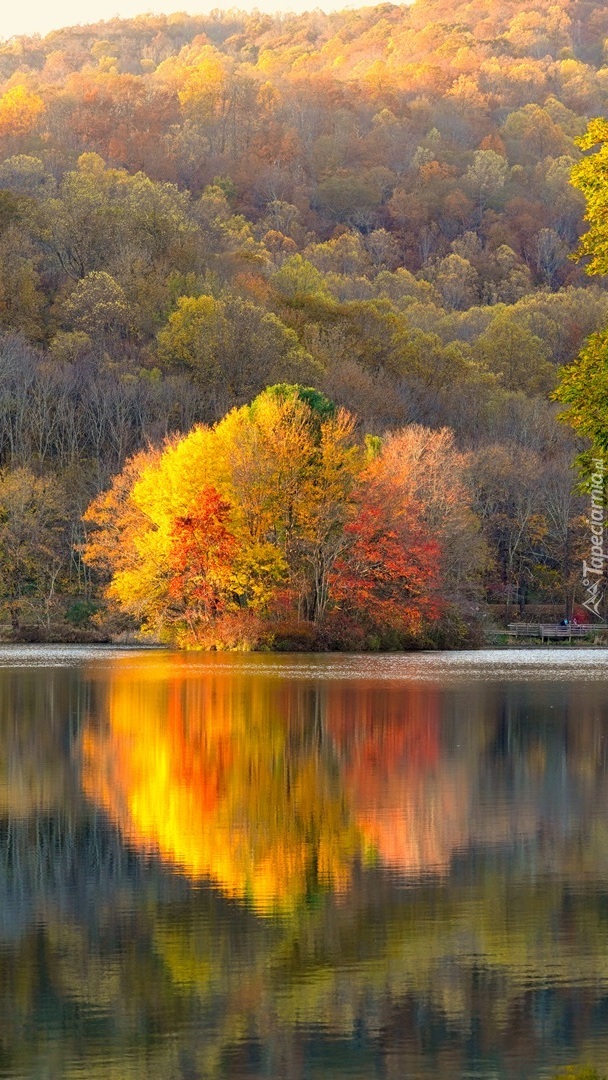Edytor tapety: Odbicie kolorowego drzewa w jeziorze