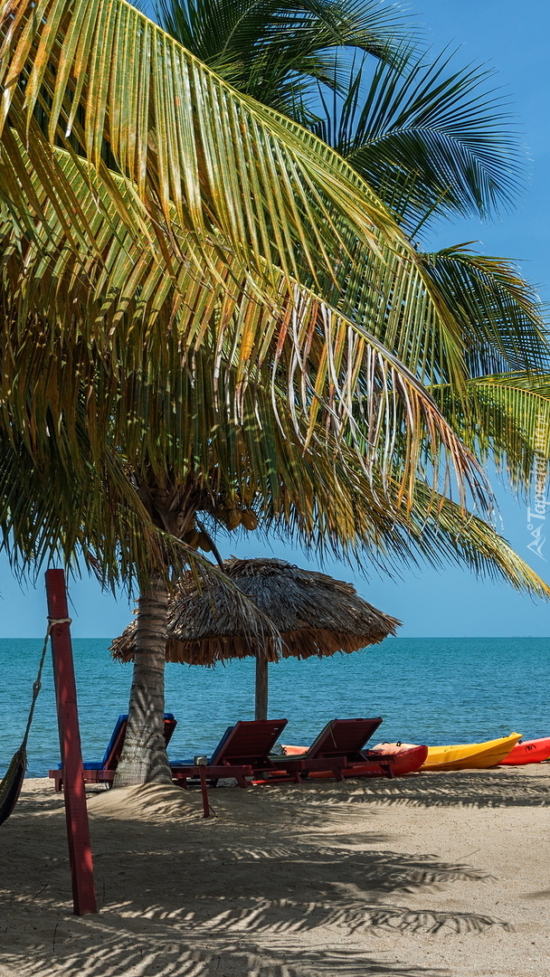 Edytor tapety: Leżaki pod palmami na plaży