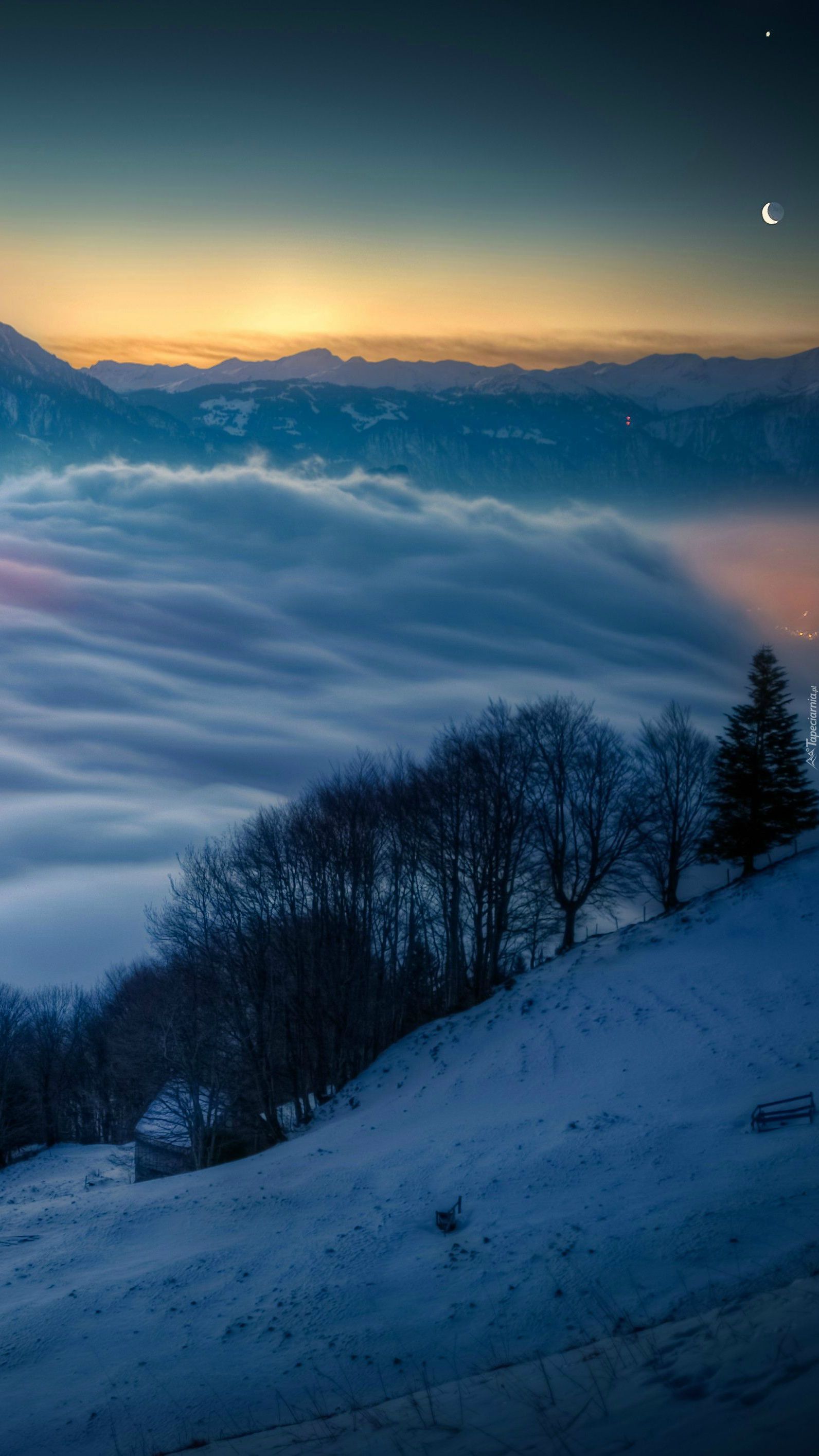 Edytor tapety: Szwajcarskie stoki w chmurach