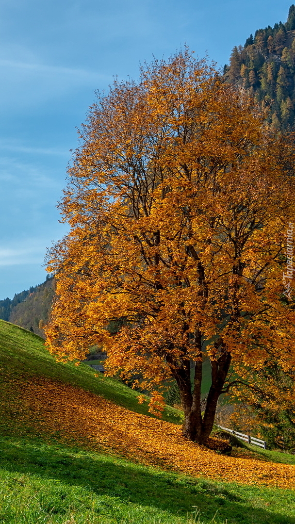 Edytor tapety: Jesienne drzewo przy płocie na wzgórzu