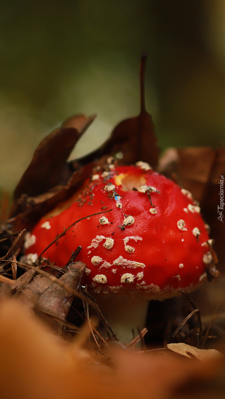 Edytor tapety: Muchomor czerwony pod liśćmi