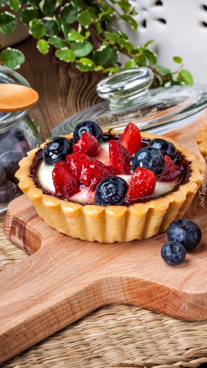 Edytor tapety: Babeczka z truskawkami i jagodami