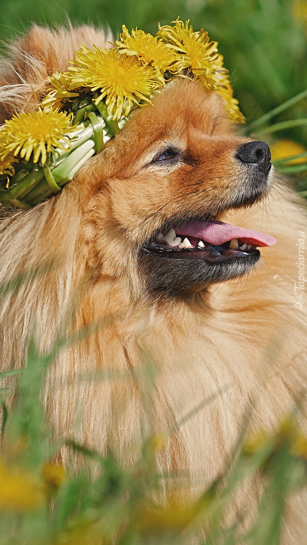 Edytor tapety: Szpic miniaturowy w wianku