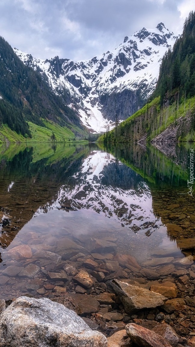 Edytor tapety: Odbicie ośnieżonych gór w jeziorze