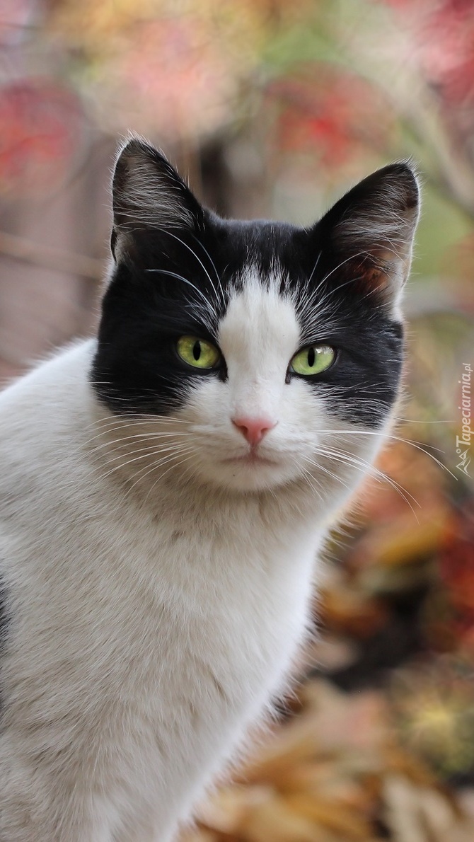 Edytor tapety: Czarno-biały kot w zbliżeniu