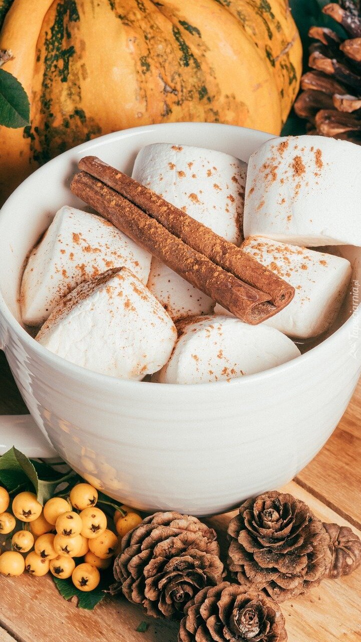 Edytor tapety: Pianki i laska cynamonu w kubku