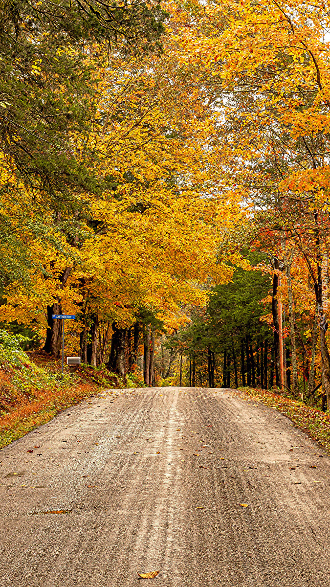 Edytor tapety: Pożółkłe drzewa przy drodze