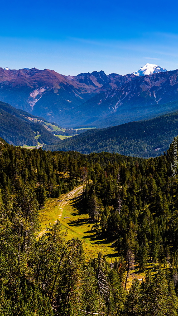 Edytor tapety: Drzewa w górskiej dolinie