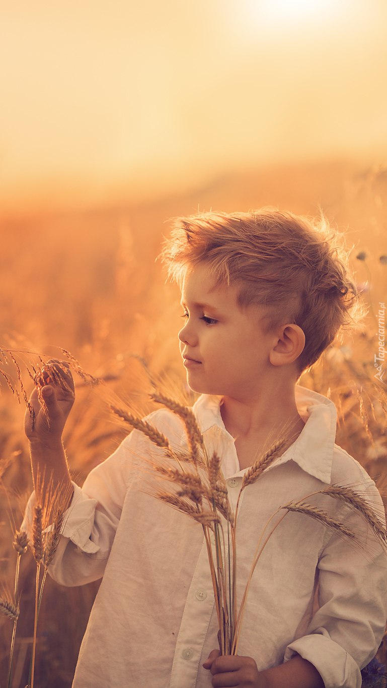 Edytor tapety: Chłopiec z kłosami zboża