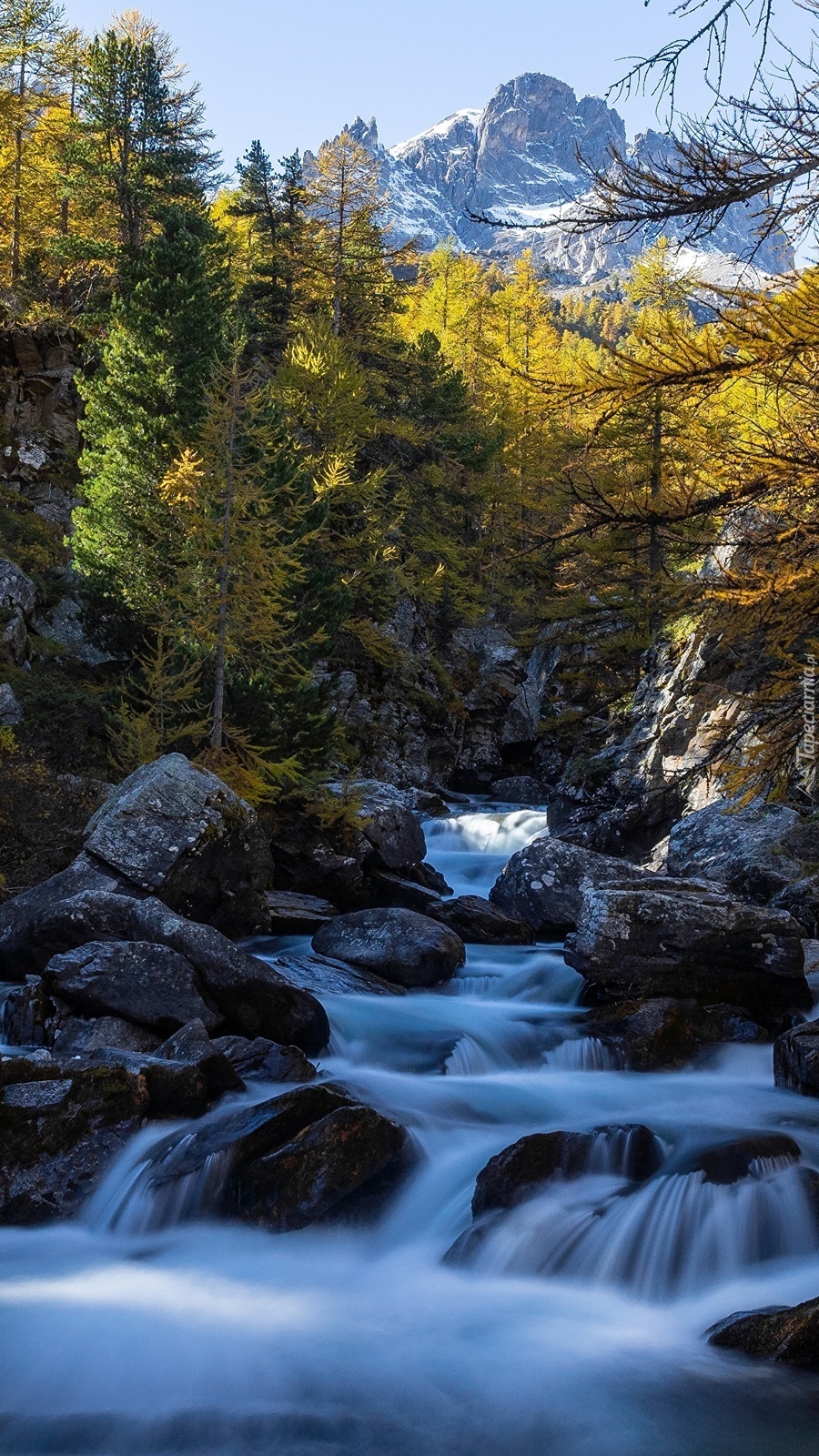 Edytor tapety: Drzewa przy kamienistej rzece