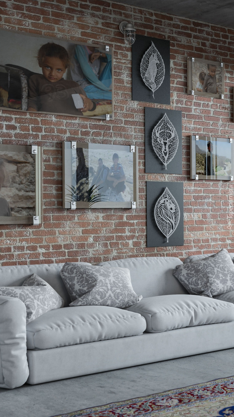 Edytor tapety: Obrazy nad kanapą w pokoju