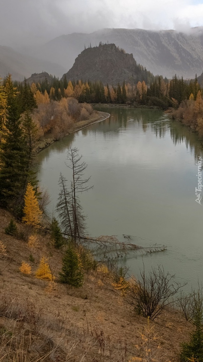 Edytor tapety: Pożółkłe drzewa nad rzeką