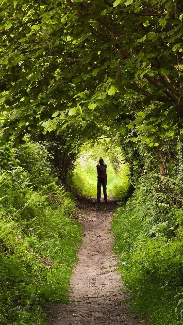 Edytor tapety: Człowiek na ścieżce pod gałęziami drzew