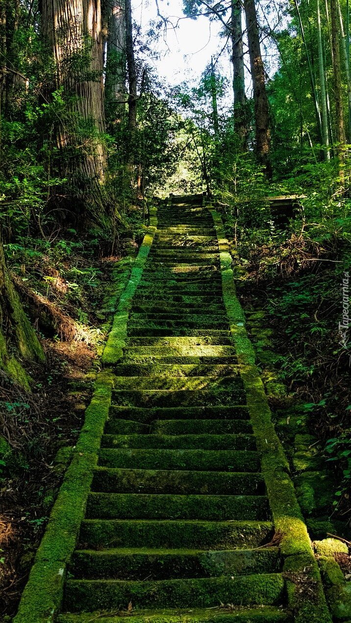 Edytor tapety: Omszałe schody w lesie
