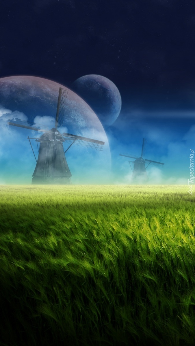 Edytor tapety: Młyny na polu w grafice
