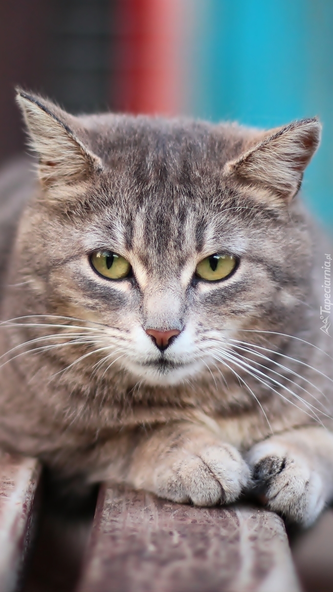Edytor tapety: Odpoczywający na ławce mruczek