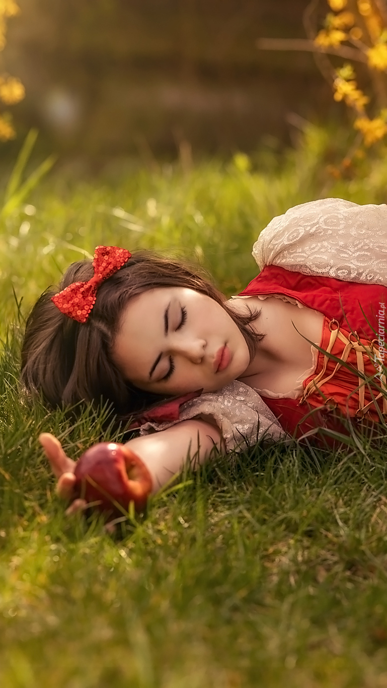 Edytor tapety: Kobieta z jabłkiem na trawie