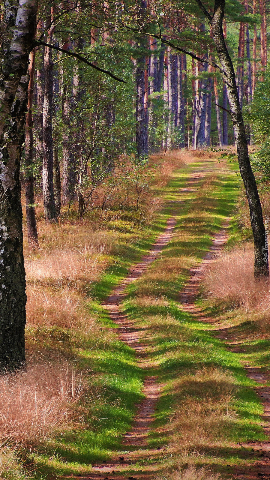 Edytor tapety: Leśna ścieżka między drzewami
