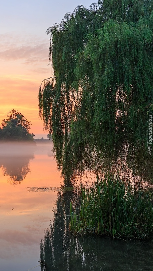 Edytor tapety: Wierzba płacząca nad jeziorem