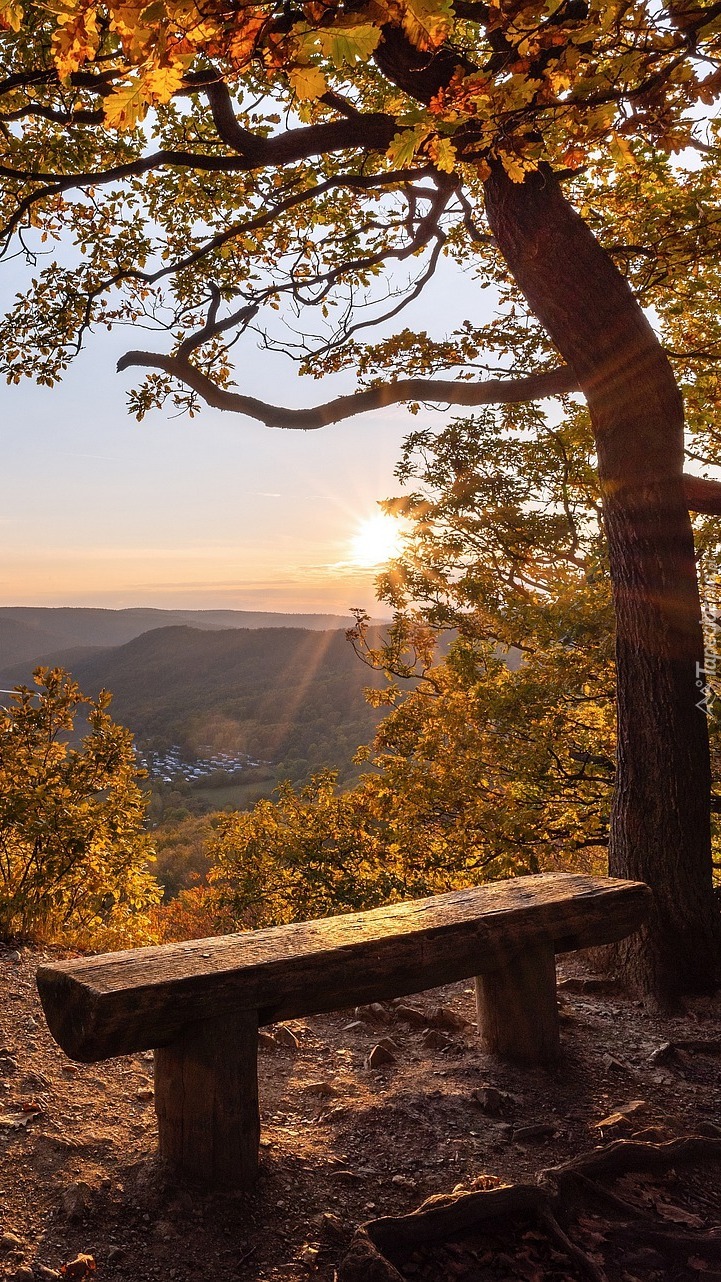Edytor tapety: Ławka pod jesiennym drzewem