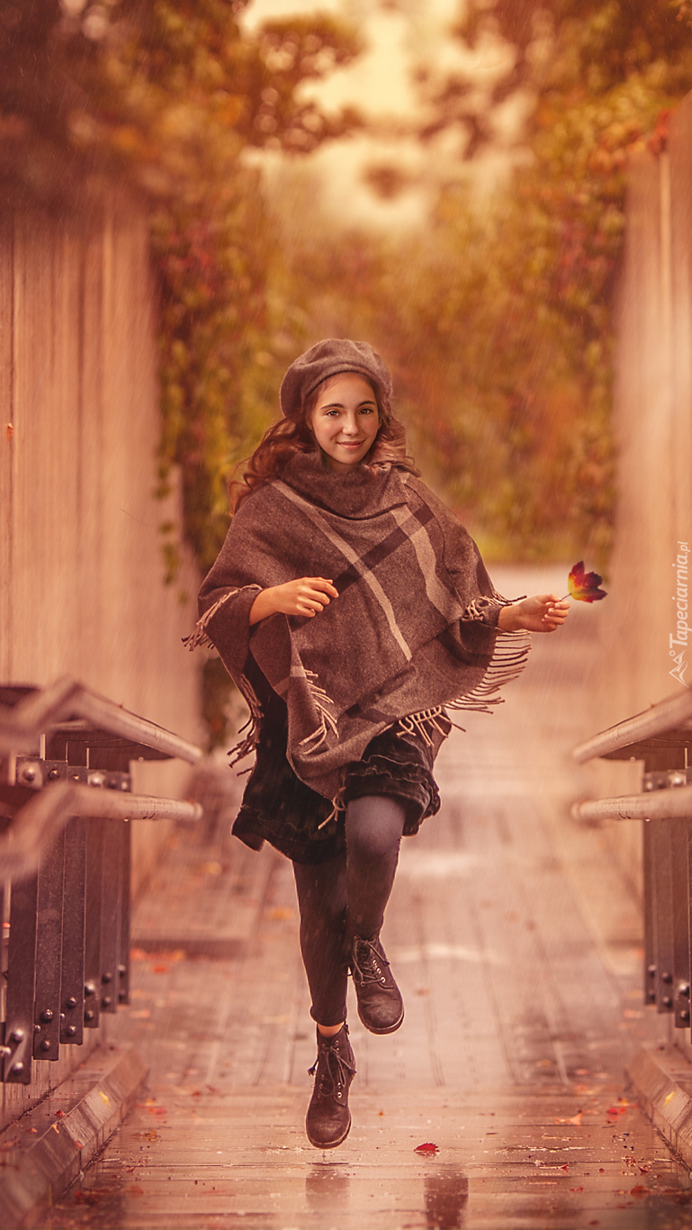 Edytor tapety: Dziewczyna w szalu biegnąca przez most