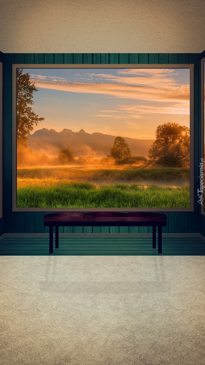 Edytor tapety: Widok z okna na jesienny krajobraz