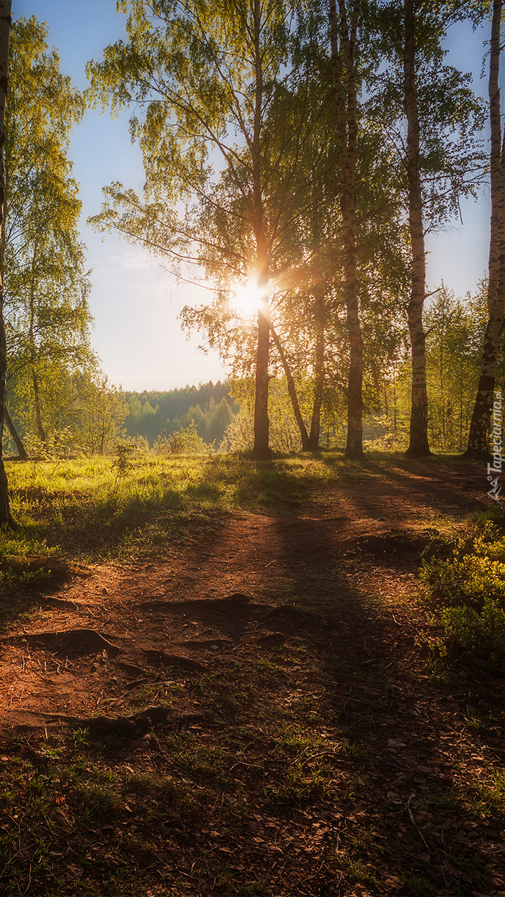 Edytor tapety: Brzozowy las o poranku