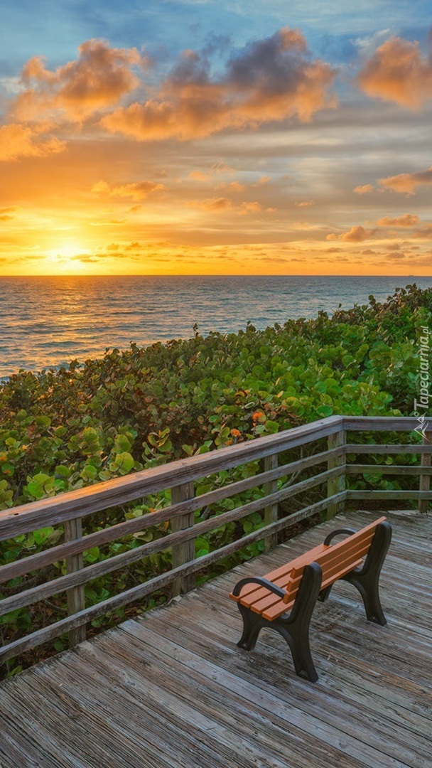 Edytor tapety: Ławka na pomoście nad morzem