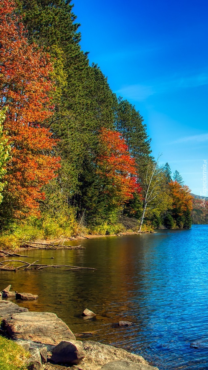 Edytor tapety: Kolorowe drzewa na brzegu jeziora