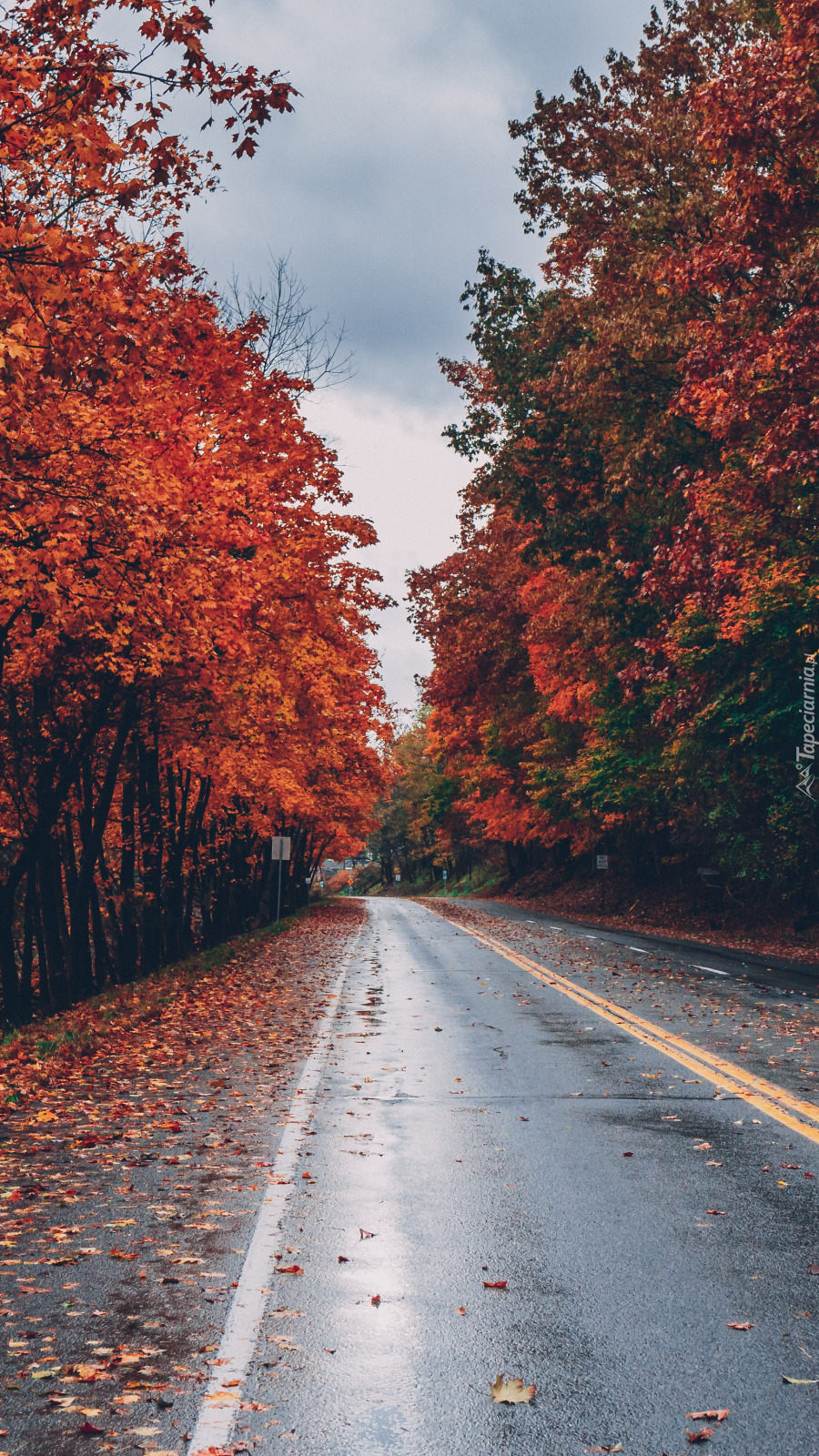 Edytor tapety: Droga pośród jesiennych drzew