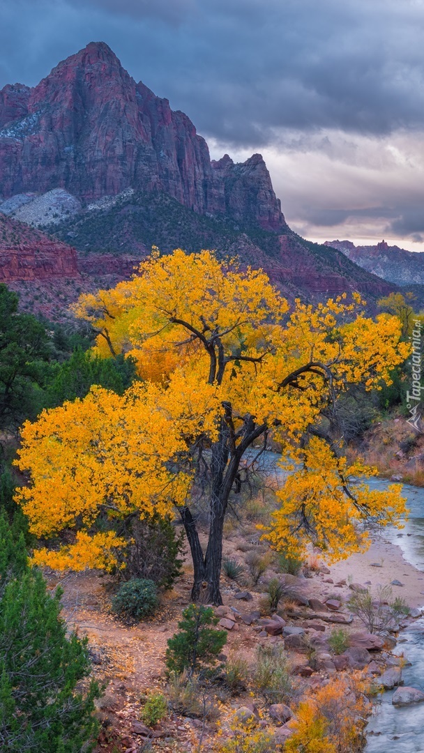 Edytor tapety: Jesienne drzewo i góra Watchman