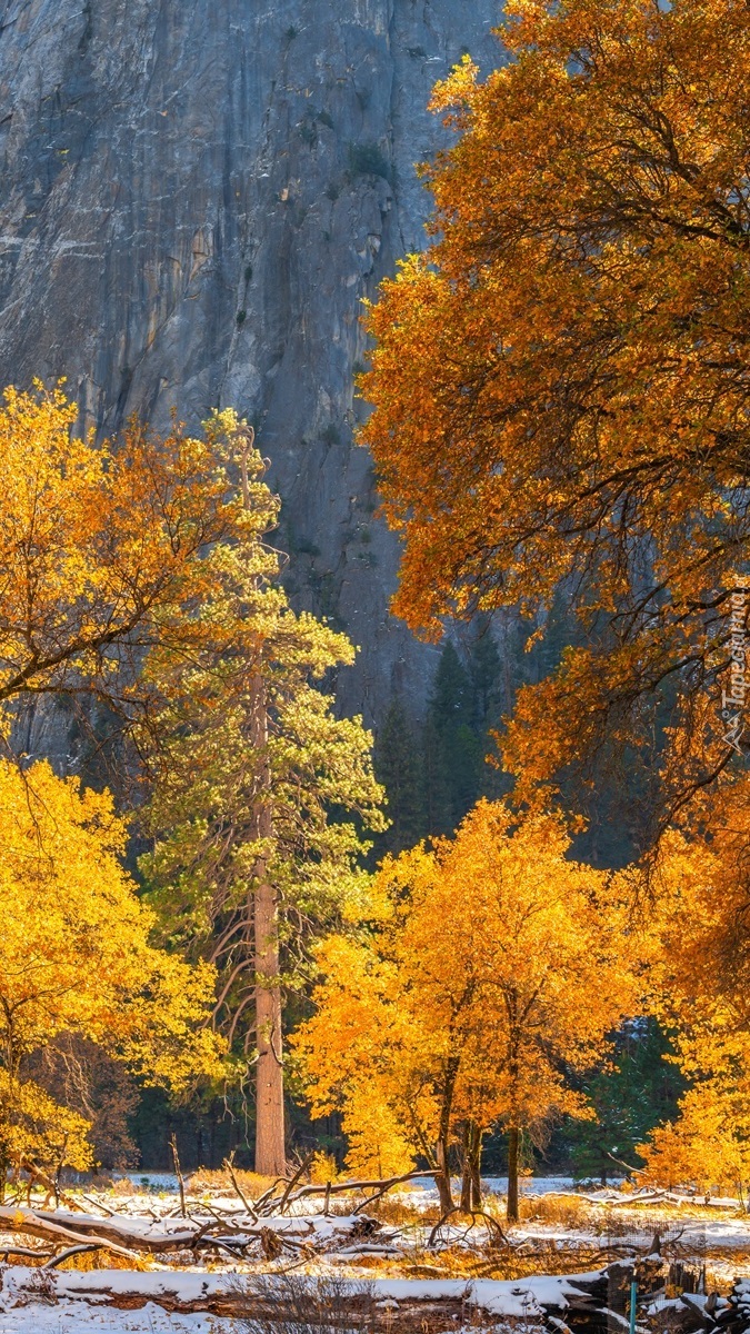 Edytor tapety: Jesienne drzewa na tle skał
