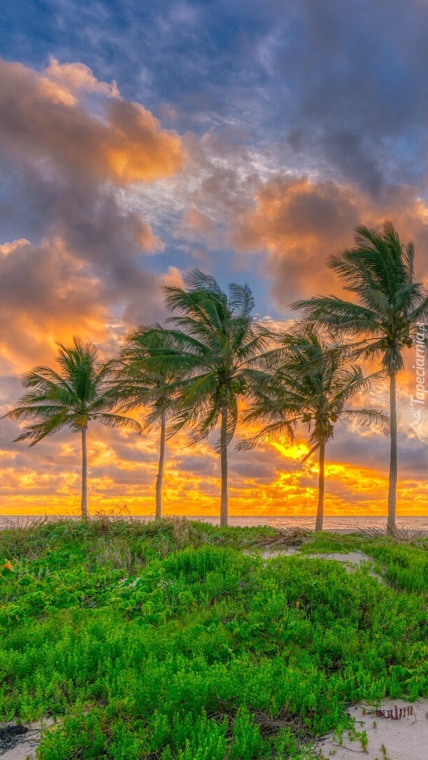Edytor tapety: Palmy na tle wschodzącego słońca