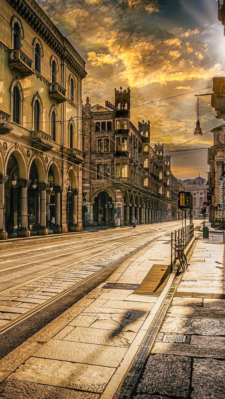 Edytor tapety: Szyny tramwajowe na ulicy miasta
