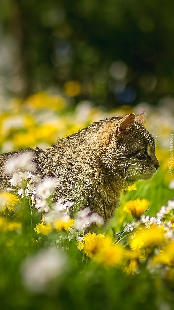 Edytor tapety: Bury kot na ukwieconej łące