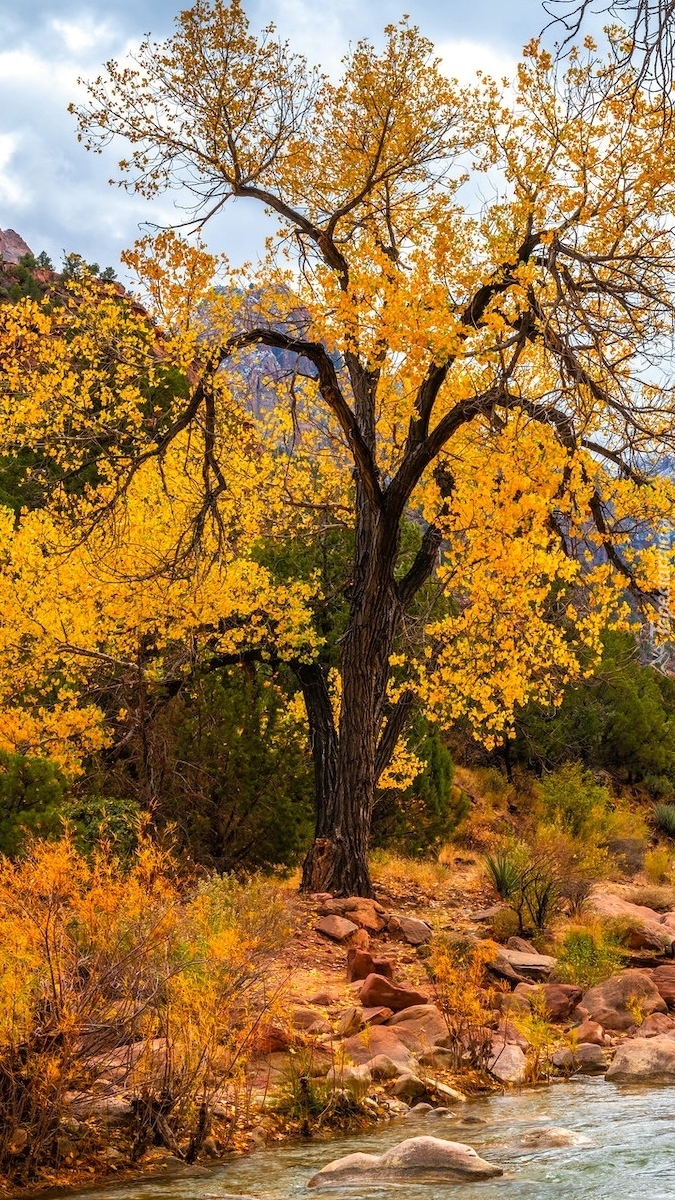 Edytor tapety: Jesienne drzewo nad rzeką