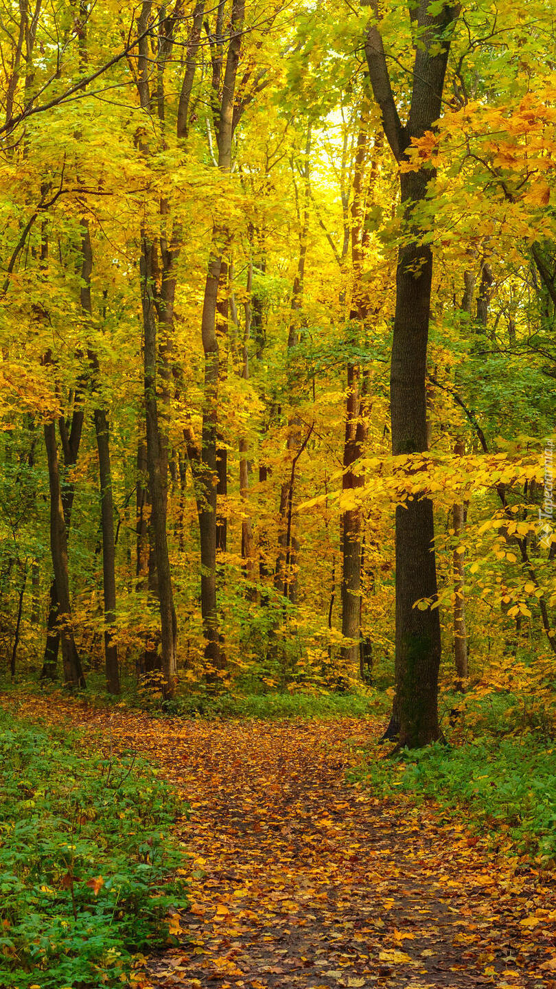 Edytor tapety: Pożółkłe drzewa w lesie