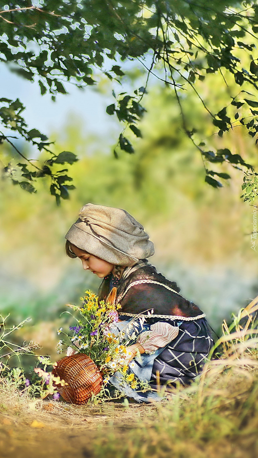Edytor tapety: Dziewczynka z koszykiem kwiatów