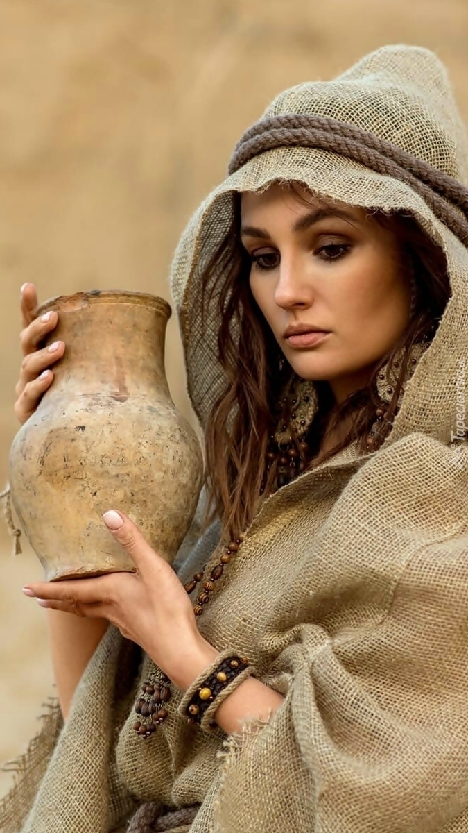 Edytor tapety: Kobieta w kapturze z dzbanem